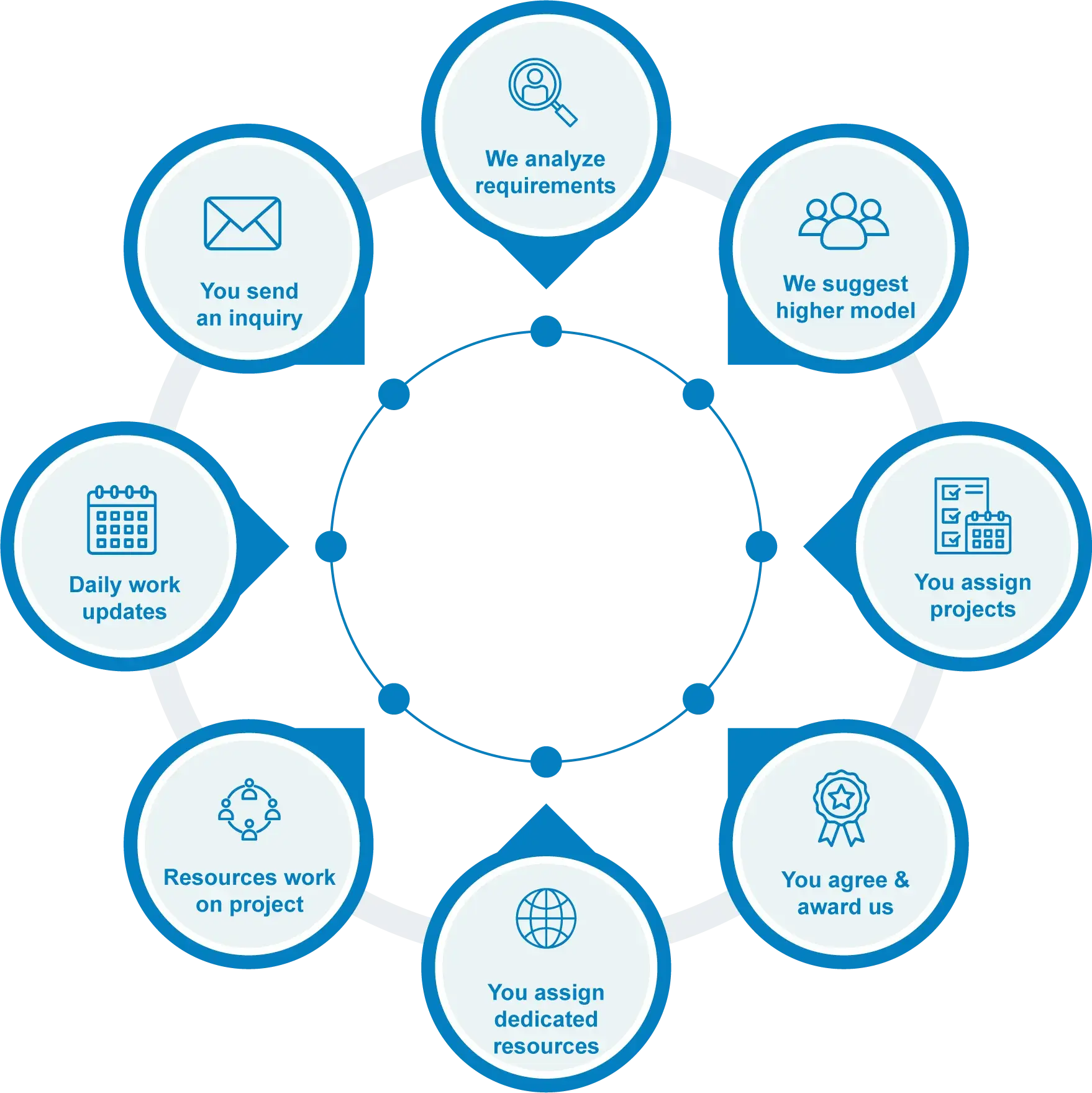 Do you lack the software developers you need to complete your day-to-day work? We thoroughly choose team members who possess the necessary skills and experience that you need. Once we complete our careful screening process, we incorporate them into your team and then either pass them on to your leadership team or take on the responsibility of managing them for you. By enlisting a committed team, we enhance your workforce with dependable, experienced, and dedicated professionals who will provide comprehensive and continuous support for your company.